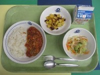 10月は食品ロス削減月間です。○牛乳○ビーンズドライカレー○ポテトサラダ(ミソ...