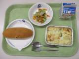 今日は、高野豆腐を使った新メニューです。 牛乳 ぶどうパン 高野豆腐のグラタン...