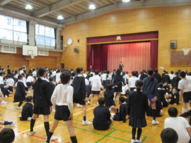 10月 音楽昼会 公開日 2025/11/01 更新日 2025/11/01 全学年 10月31日(金)の音楽昼会では、全学年でわらべうた「チョッパー」で遊びました。歌に合わせて動きをつけながら楽しく活動しました。歌声と笑い声が体育館いっぱいに響きました。学年をこえて一緒に歌い、遊ぶことで、音楽を通してつながりを感じることができました。