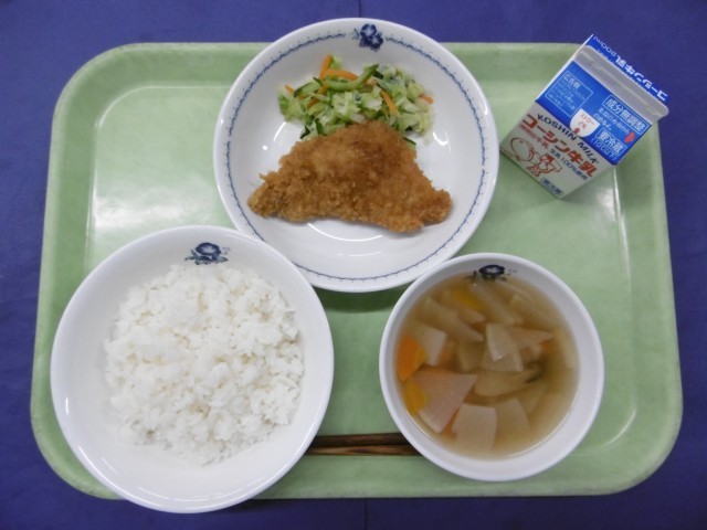 きょうは、宮城県大崎市からいただいたささ結の新米がおいしく炊き上がりました。「お米の聖地」といわれている大崎市は、江戸時代から江戸の食文化を担ってきた歴史ある地であります。ふだんから忍岡小学校の給食では、同じ大崎市のお米の「ひとめぼれ」を使っています。どちらもとてもおいしいお米ですが、違う特徴があります。五感を研ぎ澄まして食べ比べてみましょう。農家の方々のご苦労や思いを考え、よく味わって感謝の気持ちでいただきましょう。