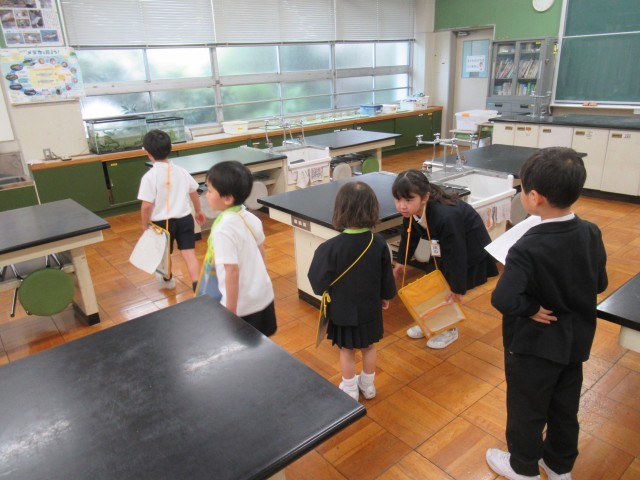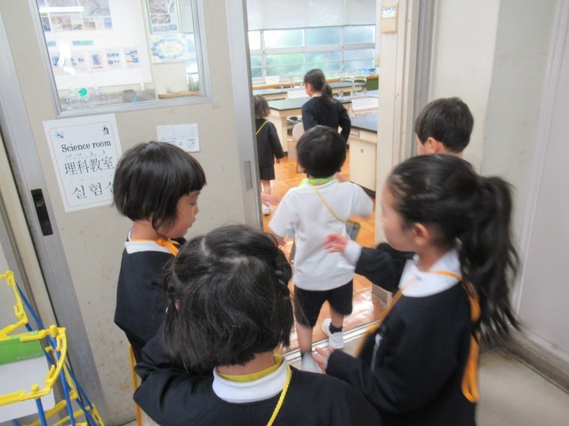 1年生にメダルを渡し、校内のいろいろな場所を1年生に教えてあげました。