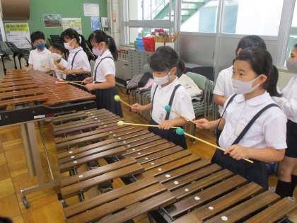 3年生の音楽では、「ゆかいな木きん」に取り組んでいます。