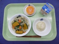 【えほん給食「うどんのうーやん」】 きょうのこんだては、ほうとううどん、中華まん...