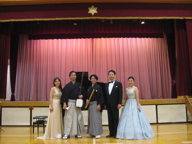 今年度は、声楽家の方々(ソプラノ、バリトンお一人ずつ)、ピアノ、そして三味線と尺八の演奏家の方々が来て下さいました。