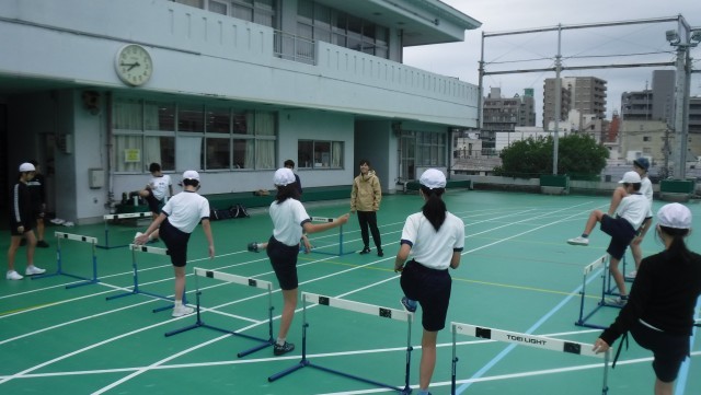 6年生の連合運動会朝練習に、上野中学校の陸上部の生徒と顧問の先生方が参加してくださり、ハードル走と走り幅跳びの跳び方を教えていただきました。朝の忙しい中、3回も来校してくださり、6年生のためにご指導いただきました。本当にありがとうございました。心より感謝いたします。