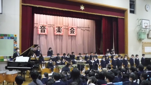 今日は音楽会です。1年生の「はじめの言葉」で幕が明けました。