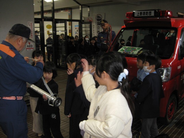 社会科の学習で消防団の方をお招きしてお話を聞きました。