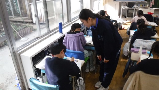 低中学年の学習補助や主事さんの仕事、スクールサポートスタッフや理科支援員の仕事などの体験もしました。3日間という短い期間ではありましたが、一生懸命頑張っていました。