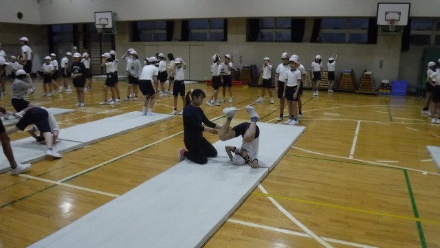 3校時は、6年生が実技体験を行いました。マット運動のコツを教えていただき、今までできなかった技ができるようになった子もいました。