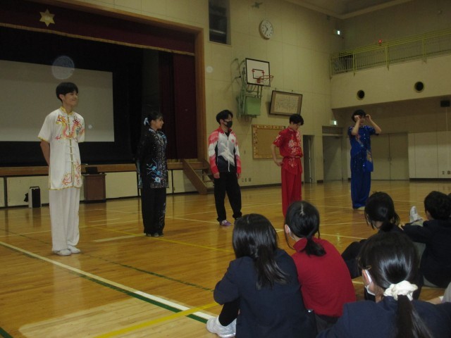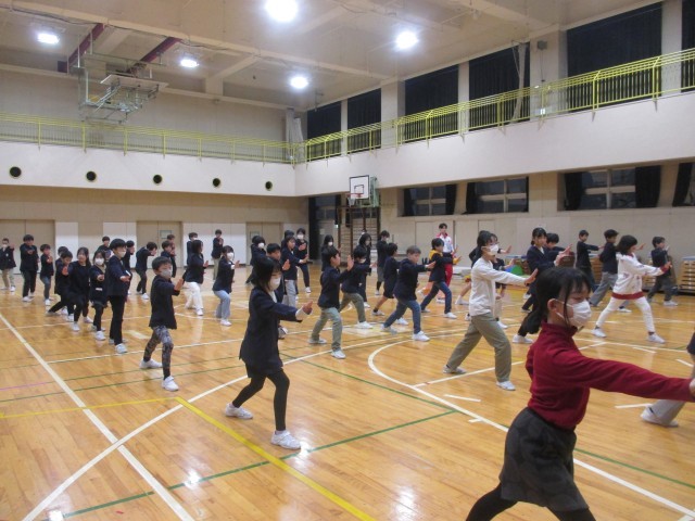 12月3日(水)に武術太極拳の鑑賞、体験をしました。切れのある体の動きや剣や槍などの武器を持って戦う迫力のある動きに、子供たちはどよめきながら拍手を送っていました。最後に講師の先生から、「自分の楽しいと思うことを続けてほしい」と夢に向かう姿勢についてもメッセージをもらいました。中学校へ向けて間近の子供たちは、その言葉もしっかり受け止めていました。