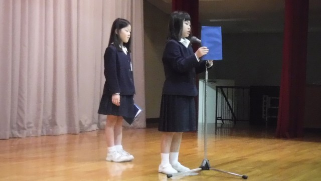 今日は終業式は、全児童が式服を着用し式に参加しました。児童代表で話をした2年生は、大変立派に自分の思いを発表することができました。校歌斉唱は、全児童の声が体育館中に響き渡り、良い形で2学期を締めくくることができました。