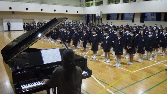 1月8日は、3学期始業式でした。全員が式服を着用し、緊張感のある雰囲気の中で式が進行しました。4年生の児童代表の言葉も、大変立派でした。式の最後に歌った校歌は、大きくきれいな歌声で体育館に響き渡りました。今日から3学期がスタートします。