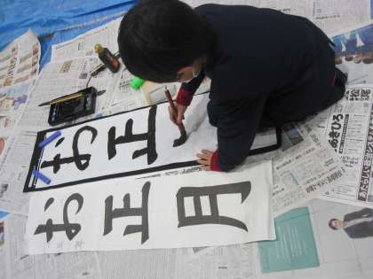 席書会を行いました。 公開日 2023/01/17 更新日 2023/01/17 今日の出来事 1月12日木曜日に席書会を行いました。 みんな真剣なまなざしで、集中して書きました。 今週土曜日の学校公開に、掲示した作品が見られますので、是非ご覧ください。