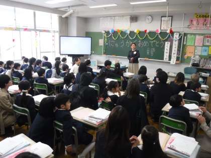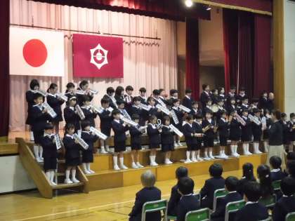 入学式が終わった後は、2年生によるアトラクションです。呼びかけと合奏のプレゼントがありました。その後、保護者も入っての記念撮影が行われ、各教室で担任紹介とこれからのことについてお話がありました。