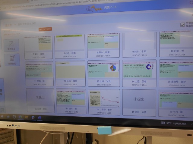 社会科で「食料自給率」について、問題点などを考える学習でした。