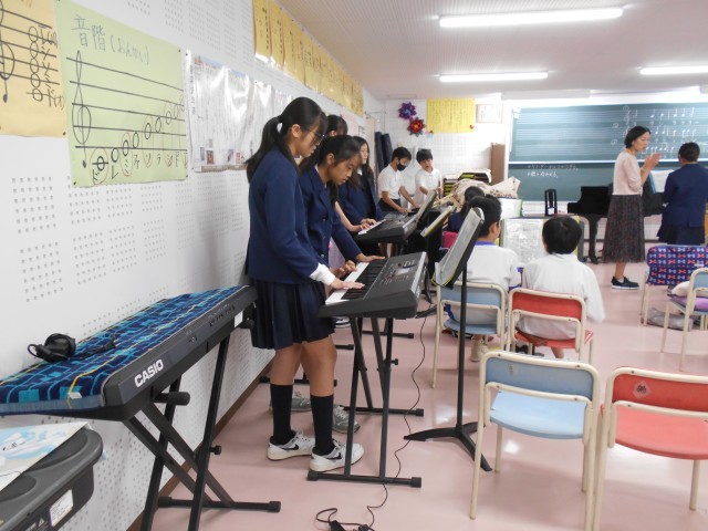 楽器を取り入れ、それぞれのパートに分かれて練習をしていました。