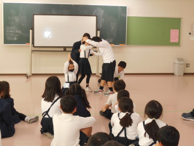 3・4時間目に3年生が、劇団のワークショップを体験しました。