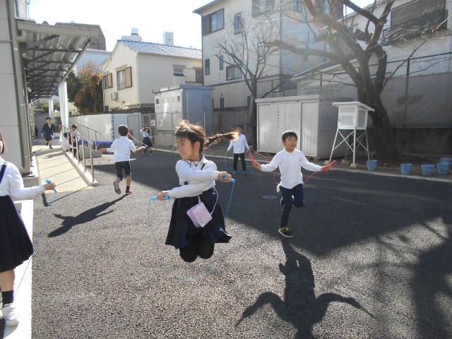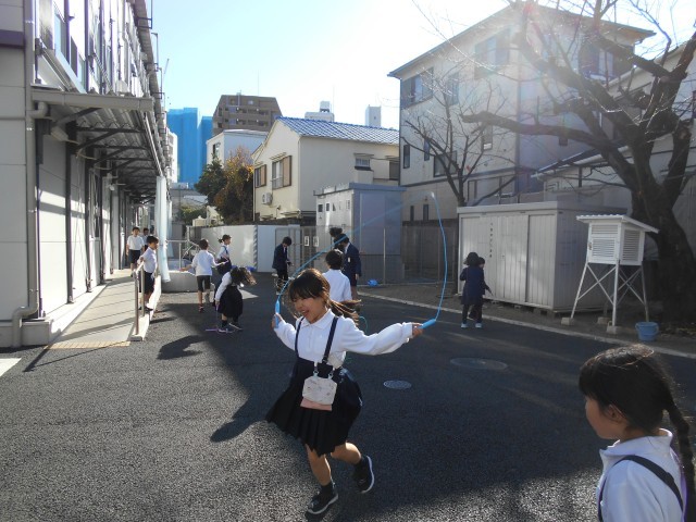 工事の関係で校庭が使用できませんが、狭いながらも上手に外の場所を使っています。