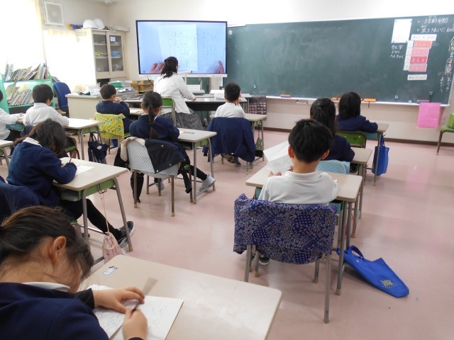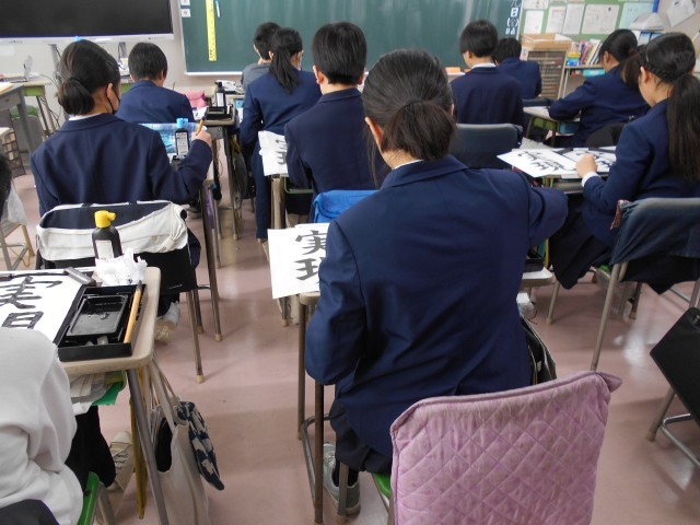 3時間目に、全校一斉で、クラスごとに席書会を行いました。