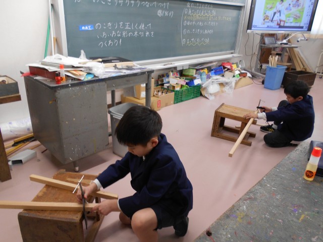 3年生が、図工の時間にのこぎりの学習をしました。