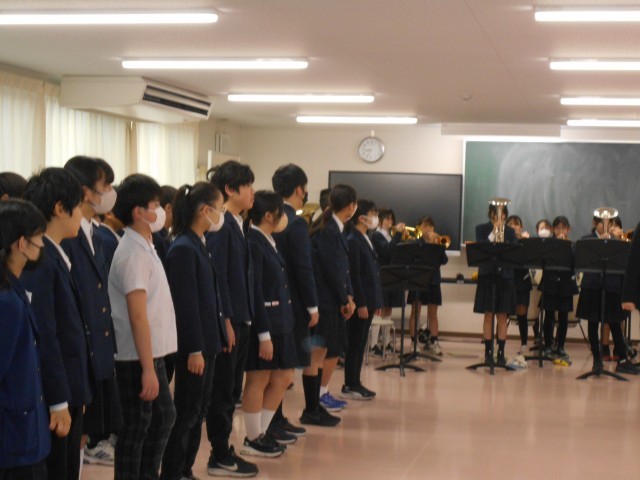 ブラスバンドの演奏で、きれいな声で歌うことができました。