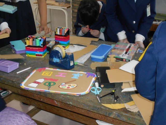 3月4日(水) 図工でかんばん作りをしています。