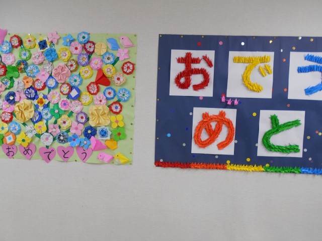 6年生の卒業に向けて、各学年が掲示物を作成してくれました。
