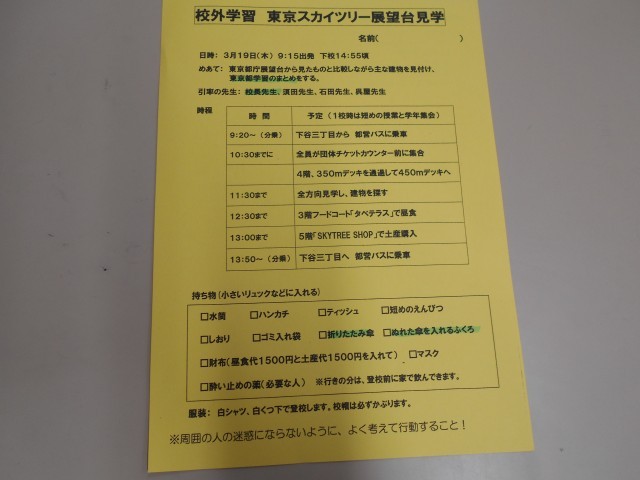 3月18日(水) スカイツリー見学の打ち合わせをしました。