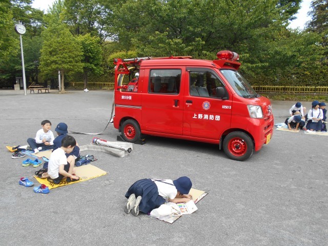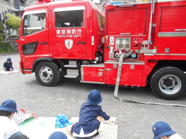 2年生が、根岸の里防災公園で、消防写生会を行いました。