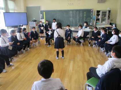 校内をまわっていると、今年度最後のお楽しみ会をしているクラスがちらほら見られます。実行委員の子どもを中心に、子どもたちが主体となって、会を進めています。どのクラスも大いに盛り上がっていました。