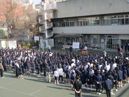 今年度最後の音楽朝会を校庭で行いました。全校児童が一堂に会して、歌うのはこの3年間で初めてのことでした。