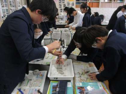 6年生が理科の大地のつくりの学習で化石の発掘活動を行っていました。
