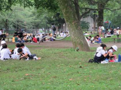 観劇後に、近くの日比谷公園でお弁当を食べました。久しぶりの外でのお弁当で、子供たちも楽しそうに笑顔があふれていました。食事も進んでいました。