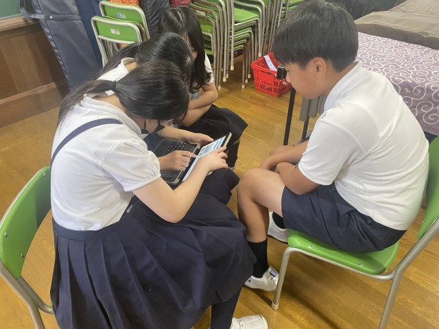 5年生は、音楽を鑑賞して、感じたことを絵に表した後、描いた絵を動画にし、紹介する学習をしています。
