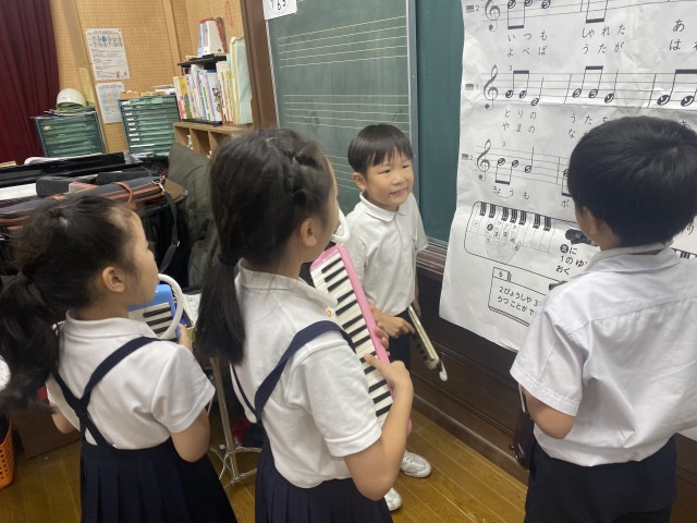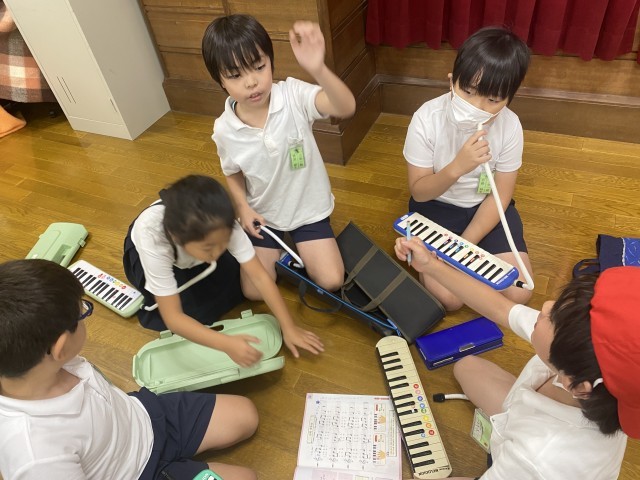 2年生は、「山のポルカ」の鍵盤ハーモニカのグループ学習に取り組みました。