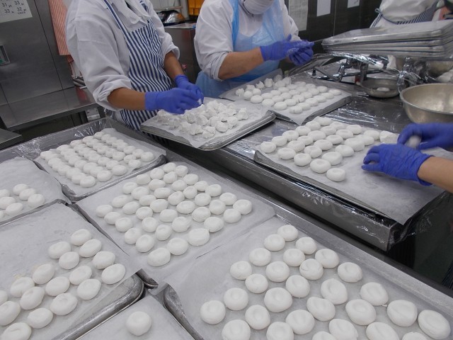 きなこ団子はひとり2個ずつだったので、児童・教職員分で約800個作りました。白玉粉と上新粉でもちもちのお団子になりました。