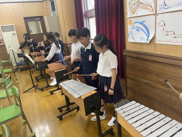 3年生は、「ゆかいなもっきん」で既習した3つのパートを初めて合奏しました。