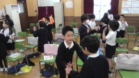 1年生は図工で絵の具を使って線を描いていました。絵の具を混ぜて、いろいろな色を作って楽しんでいました。