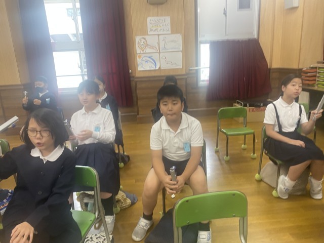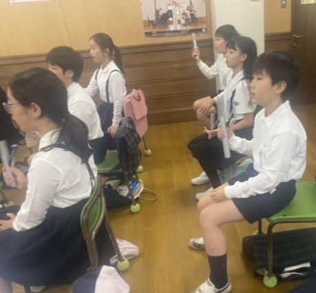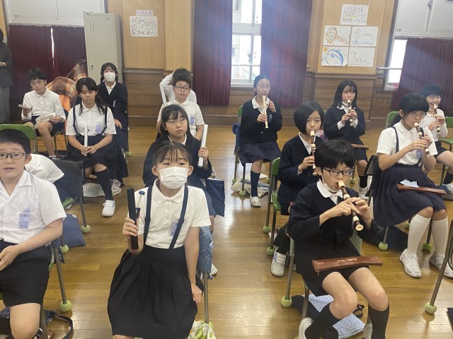 6年生は、トーンチャイムとリコーダーで合奏をしました。和音の響きが2拍ずつ移り変わることに注意しながら合奏することができました。