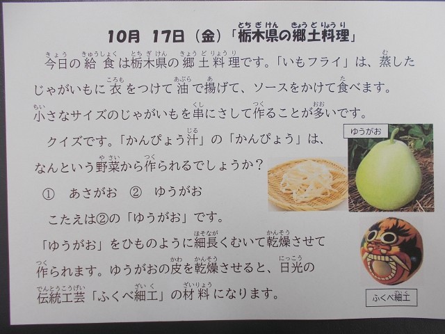 今日の給食は栃木県の郷土料理でした。