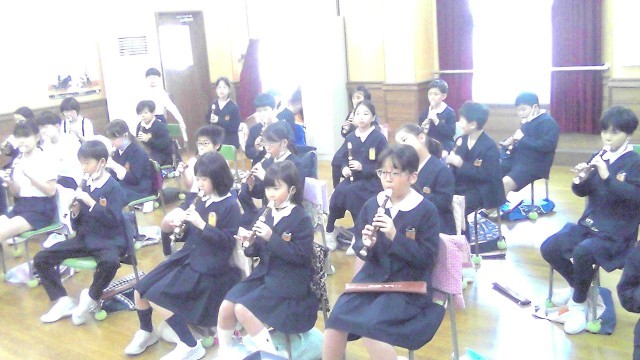 4年生は「オーラリー」でソプラノとアルトに分かれてリコーダー奏をしました。