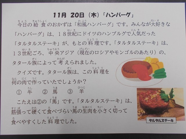 11月20日(木)今日の給食