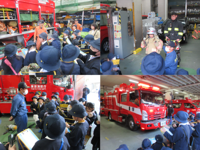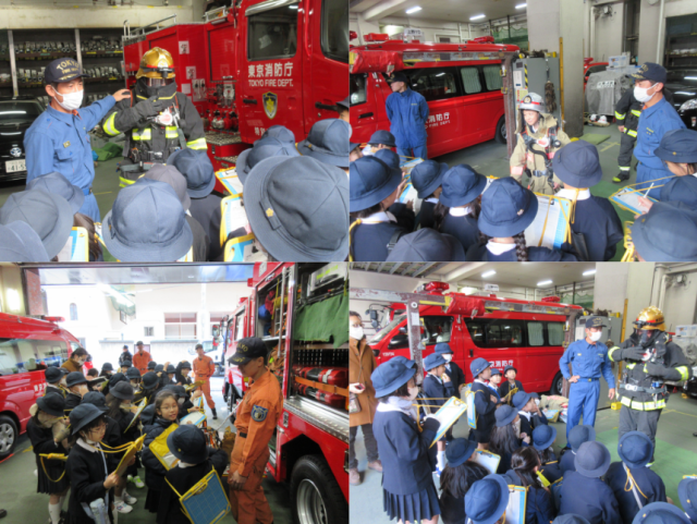 消防車やレスキュー車などを実際に見せてもらい、いろいろな質問にも丁寧に答えていただき、大変勉強になりました。メモもいっぱい書けたようです。