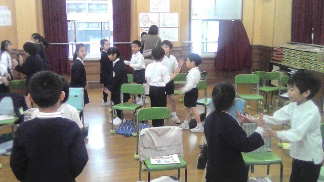 ペアで手を合わせたり、体を動かしながら鑑賞しました。