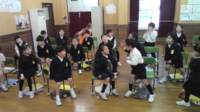 1年生は、旋律が呼びかけ合い、まるで会話をしているような歌や音楽を学習しました。