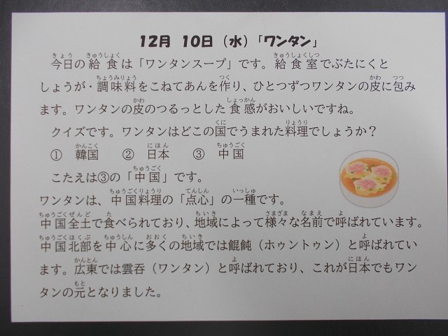 12月10日(水)今日の給食