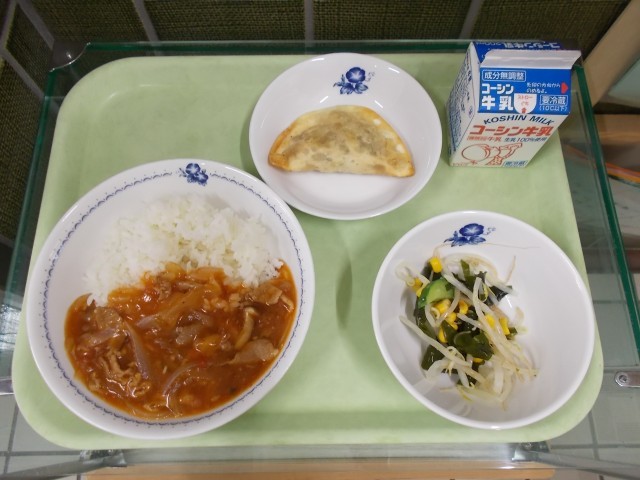 今日の「中華ハヤシライス」、なにが中華なんだろう?と思った人もいたかもしれません。サラダ油でにんにく・しょうが、豚肉、玉ねぎ、きのこ類を順に炒め、鶏がらでとったスープを加えトマト缶やケチャップ、ウスターソース、しょうゆなどの調味料を入れて煮込みます。でんぷんでとろみをつけて、オイスターソースを加え、仕上げにごま油を加えます。通常のハヤシライスよりもさっぱりと、スパイシーな香りとトマトを感じられる味付けで、ご飯が進みます。