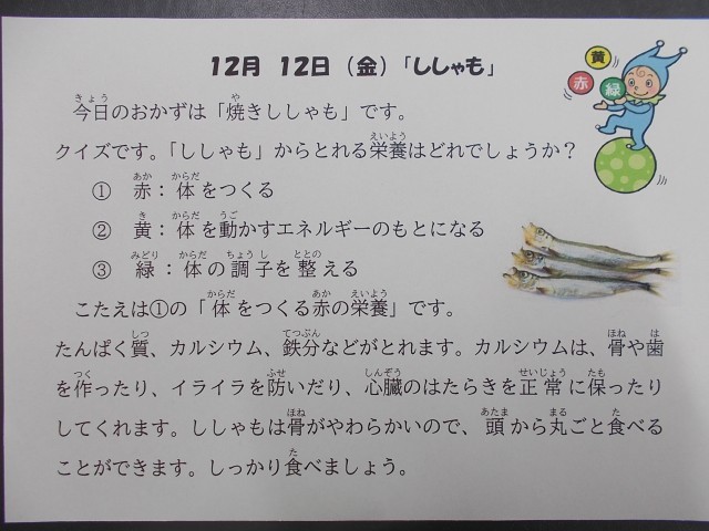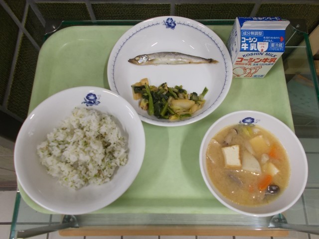 ふりかけご飯には、ちりめんじゃこを入れてカルシウムをとれるようにしました。青のりの風味とちりめんじゃこの塩味がちょうどよく、やさしい味わいのご飯になりました。