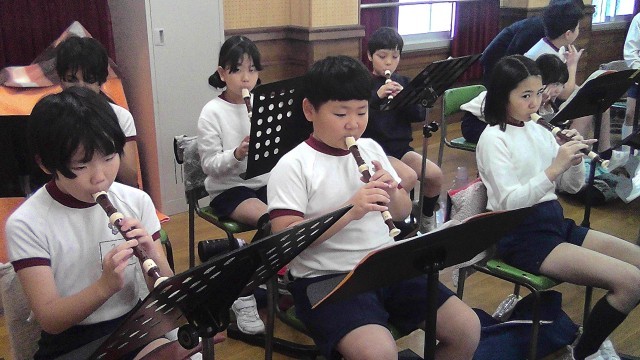 4年生は、6年生を送る会で発表する学年合同合奏に向けて、