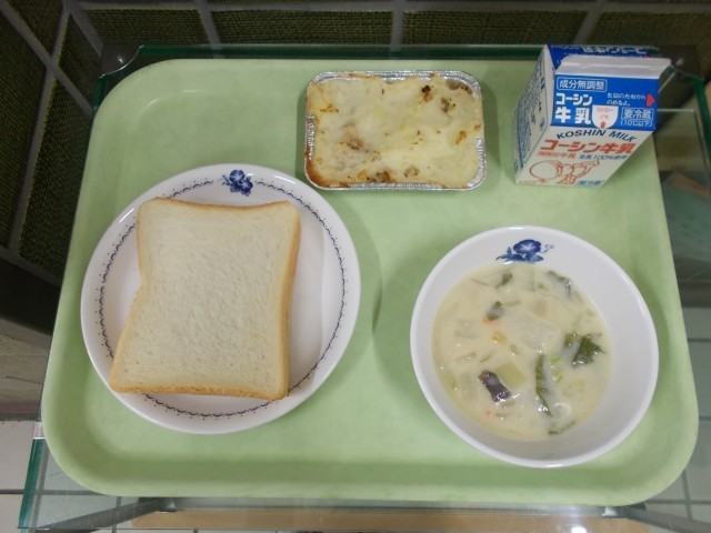シェパーズパイは、ミートソースにマッシュポテトをのせて、オーブンで焼いて作りました。ミートソースにスパイスを加えたので風味よく、さっぱりとおいしく食べられました。マッシュポテトは、じゃがいもを蒸してつぶして、塩を加え牛乳・生クリーム・バターを加えたので口当たりがなめらかでした。みんなよく食べていました。